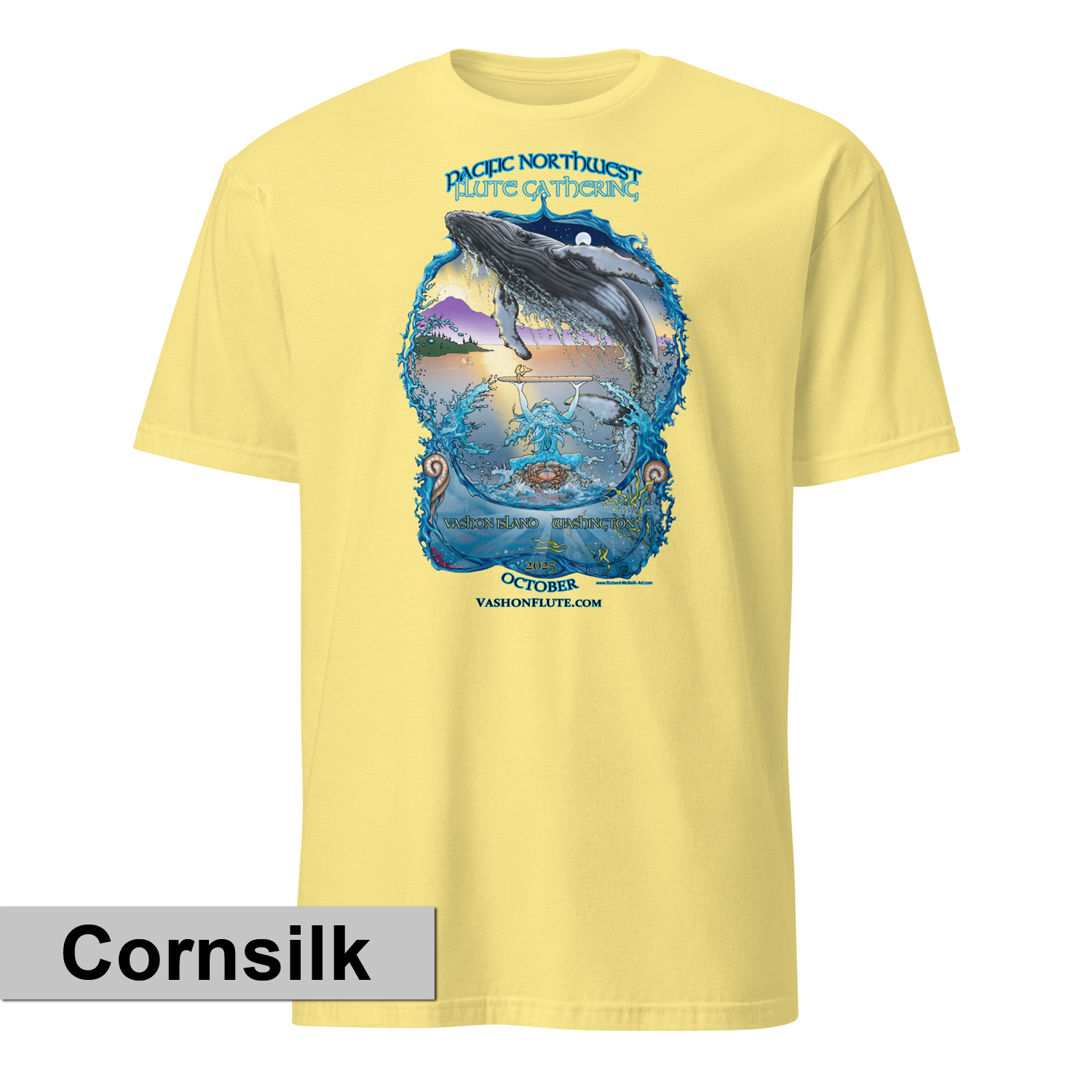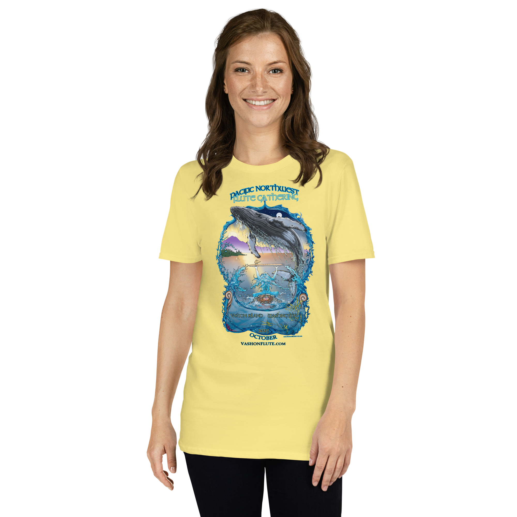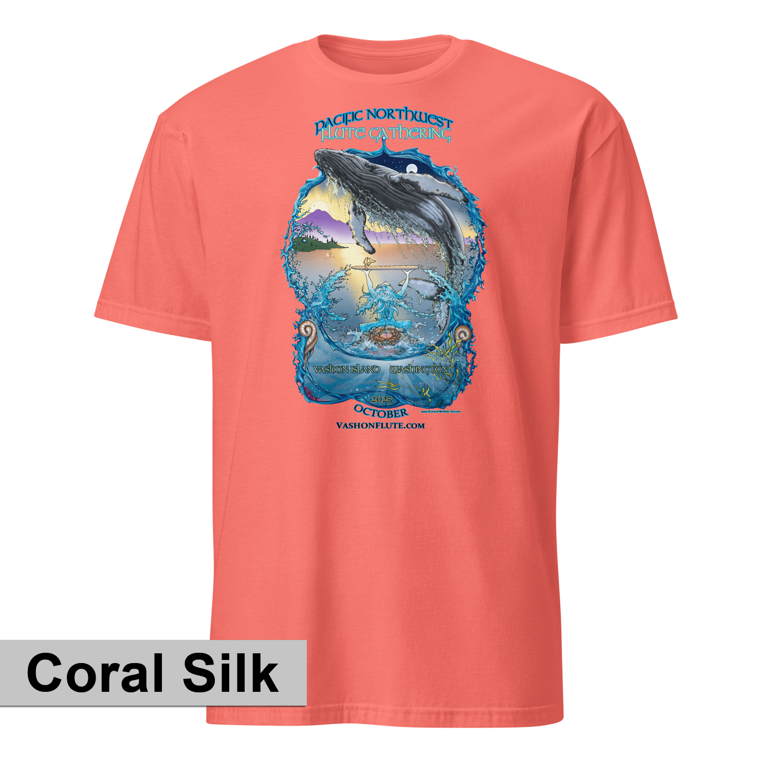 The 2025 Pacific Northwest Flute Gathering “Vashon Island” retreat T-shirt. It feels soft and lightweight, with the right amount of stretch. It’s comfortable and flattering for all.
