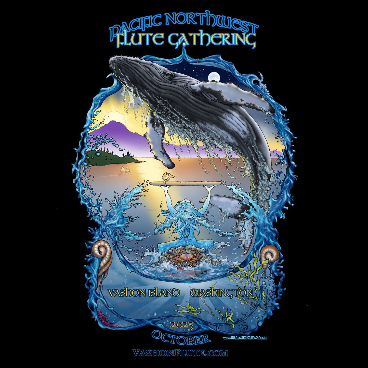 The 2025 Pacific Northwest Flute Gathering “Vashon Island” retreat T-shirt.